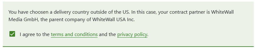 If you place an order on the WhiteWall US website with a delivery address outside of the US, you will notice a new checkbox on the payment page: