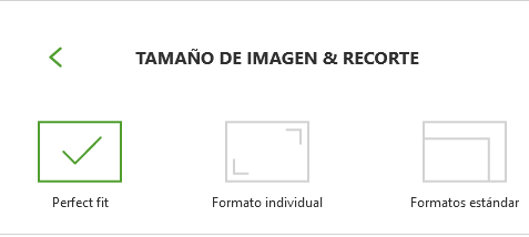 La opción de Perfect Fit está disponible para la mayoría de nuestros productos y se puede seleccionar en el configurador. Para elegirla, por favor vaya a "tamaño de imagen y recorte" en el configurador: