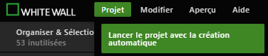 Dans l’éditeur en ligne, vous trouverez l’assistant après avoir téléchargé vos photos et avant de commencer la création en bas à droite via la baguette magique verte, ou plus tard pendant la création en haut à gauche de l’éditeur sous "Projet" :