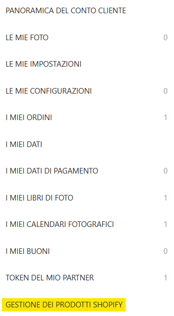 Al momento non è possibile eliminare le immagini caricate nella sezione Gestione prodotti Shopify del Suo account cliente. Questa limitazione serve a garantire che l’eliminazione non influisca accidentalmente sugli ordini o sulle configurazioni Shopify.